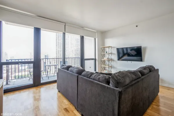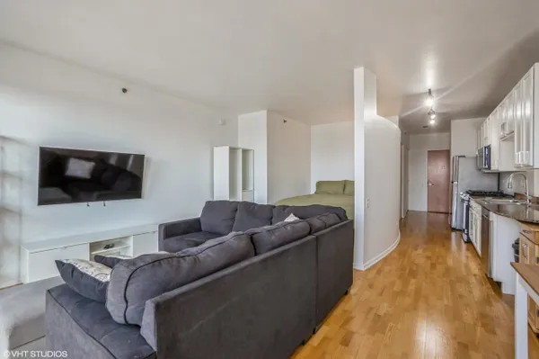 Welcome to The Edge Lofts at 210 S Des Plaines St Unit 2103, a bright and spacious studio condo offering stunning city views! This well-designed unit features an open layout with floor-to-ceiling windows, bringing in abundant natural light throughout the day. The large space easily fits a king-sized bed, living space, and dining or work space. Enjoy the convenience of in-unit laundry, a private balcony perfect for relaxing or entertaining, and a modern kitchen equipped with stainless steel appliances. This full-amenity building includes a fitness center, a community room for residents, and a 24/7 doorstaff. The location is unbeatable - just minutes to Union Station, the Medical District, West Loop, Greek Town, top universities, and surrounded by countless dining, shopping, and entertainment options. Don't miss this fantastic opportunity to live in the heart of the city with everything you need right at your doorstep! Deeded heated garage parking in a convenient spot available for purchase!