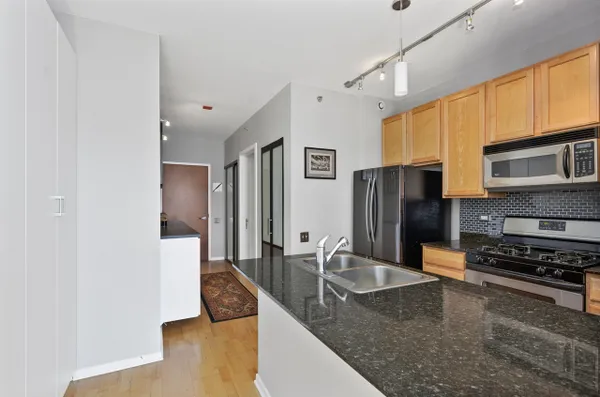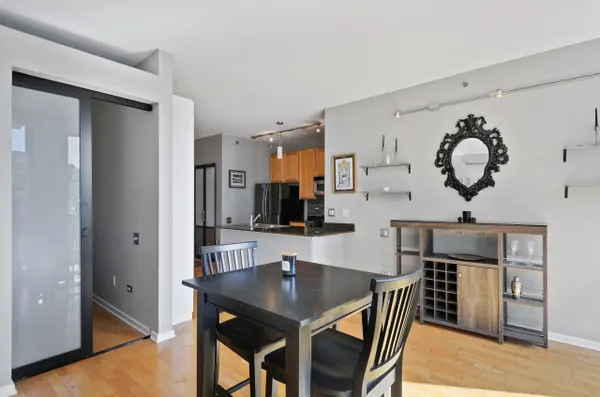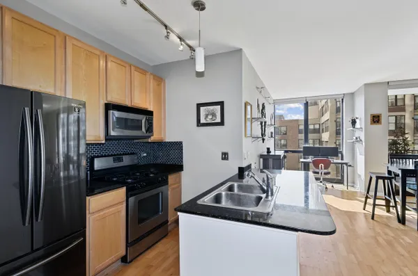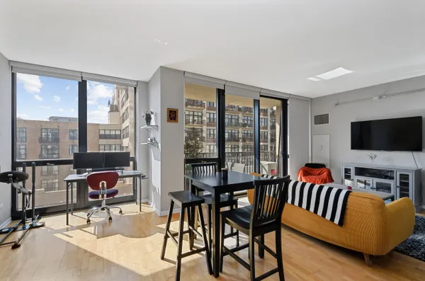Bright and airy 1 bed/1 bath condo in fabulous West Loop location. Massive private balcony off the main living area perfect for grilling and enjoying the outdoors. Open concept living and dining with extra space to fit a desk perfect for your work from home needs. Eat-in kitchen featuring granite countertops, newer stainless steel appliances and large pantry. New in-unit washer and dryer. Over 10k of upgrades invested into the unit. HOA covers everything but electricity. Building features large gym, 24-hour door staff, on-site management and engineer. Steps to grocery stores, shopping, parks, public transportation and all West Loop has to offer! Deeded garage parking $25,000. Large storage unit included in list price. 2023 taxes: $5,983.07 (Unit $5,322.72, Parking $660.35) - without homeowner exemption, which has been applied for. Monthly assessment: $658.79 (Unit $532.69, Cable & Internet $60.00, Parking $66.10).