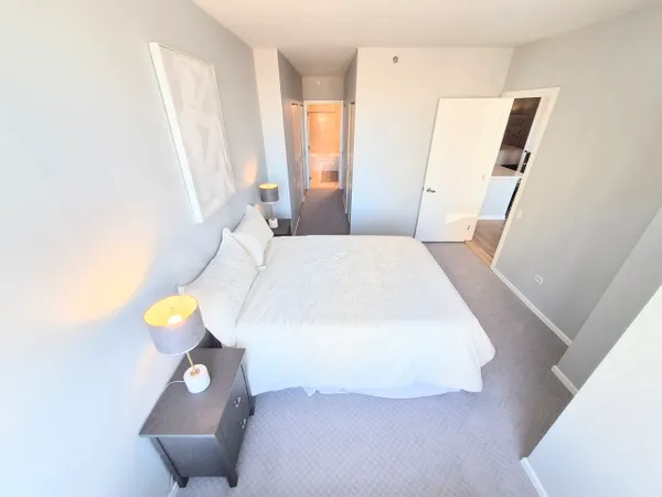 2 BR IN GREAT WEST LOOP LOCATION! PRIVATE BALCONY W/UNOBSTRUCTED NORTH VIEWS OF CITY & SKYLINE THAT WON'T BE BLOCKED. SPACIOUS S/S & NEW QUARTZ KITCH W/ISLDAND AND TILE BACKSPLASH. COZY 2ND BR, JUST REFINISHED HDWD FLRS, NEW CARPET & GOOD CLOSET SPACE. W/D IN UNIT. ASM INCL HEAT, AIR, DOORMAN & CABLE/ INTERNET. HTD/DEEDED PRKG ADDL. 25K, CLOSE TO TRAINS, XPRESSWAY, DINING & LOOP. MARBLE MASTER BATH WITH SOAKER TUB.